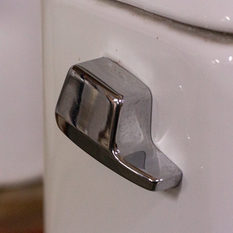 Vintage low rise toilet by Eljer Plumbing, 21 inches to top of tank.