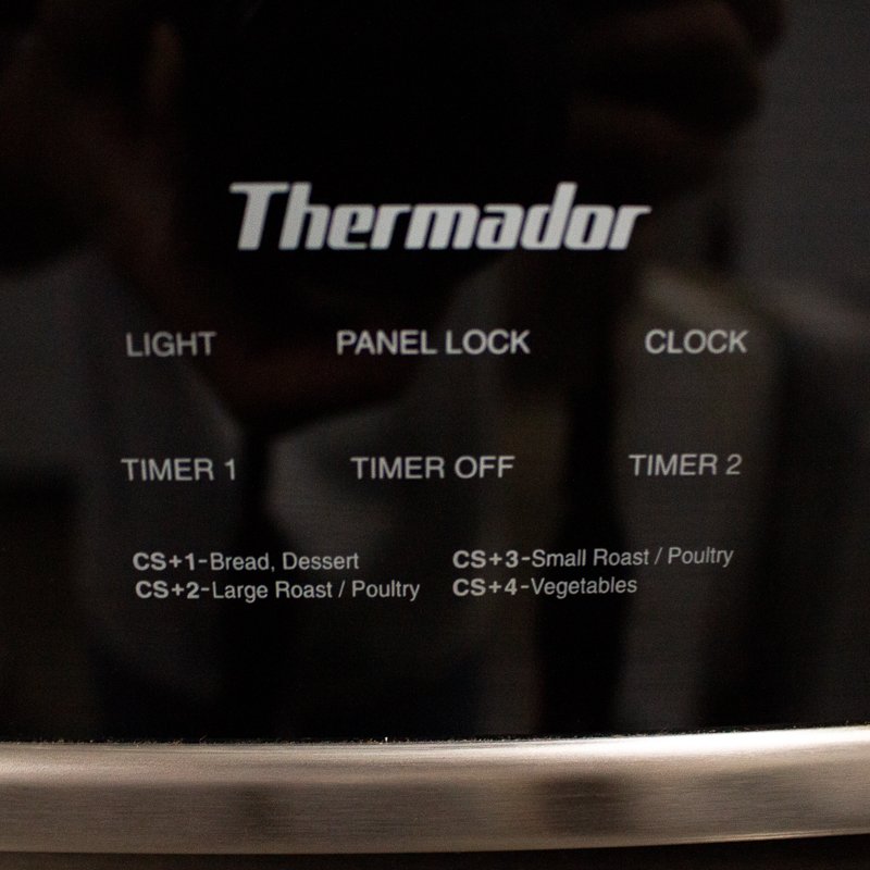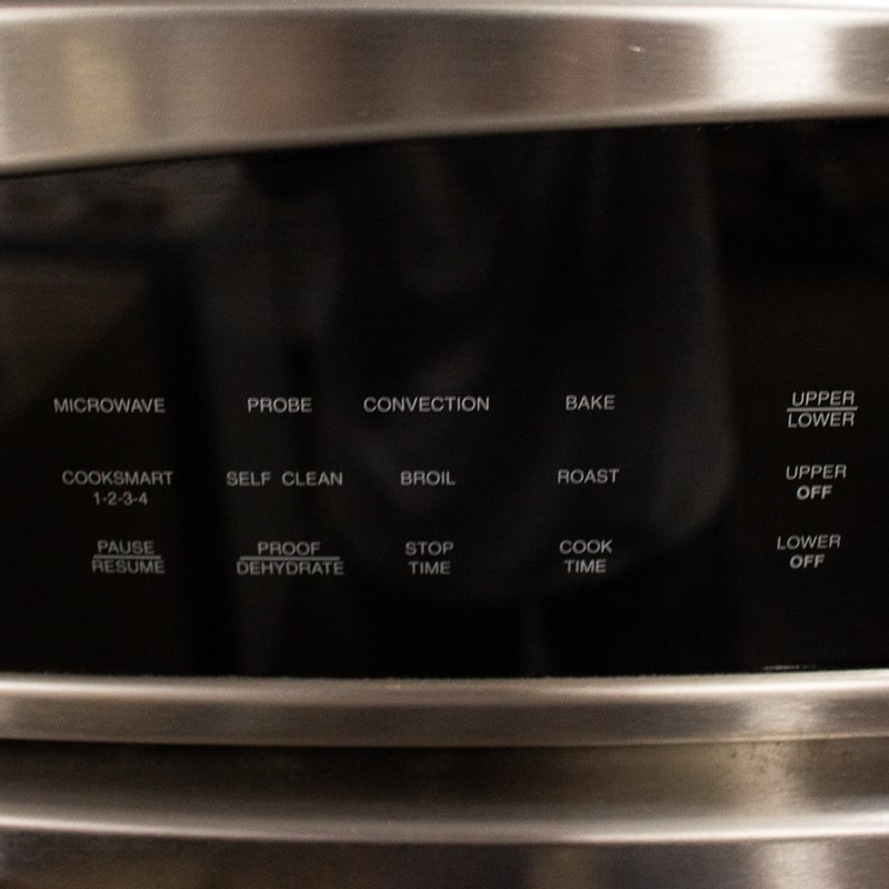 Serial #2010040. Stainless steel and black glass with electronic controls. Dual convection ovens
